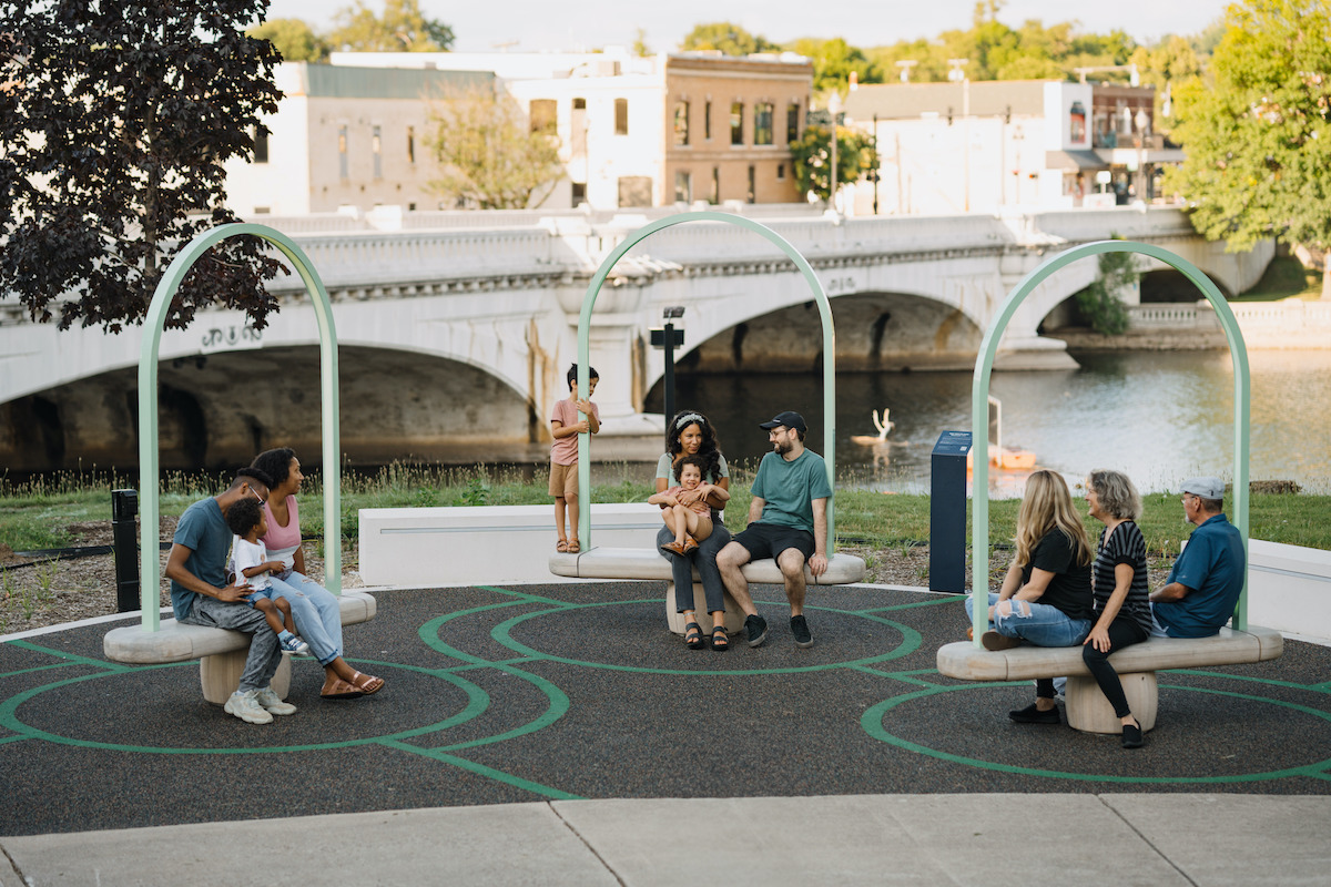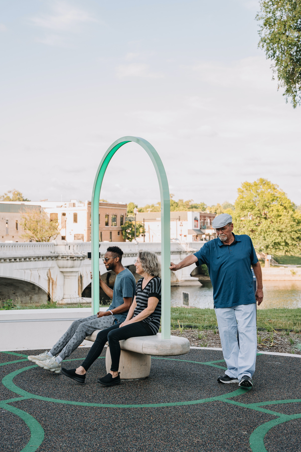 A first set of three benches were installed in the city of South Bend, Indiana as part of revitalization efforts to reconnect citizens to their riverfront. The kinetic musical benches allow passers-by to tune in to the natural landscape, while creating a new space for calm and collaboration in the city.