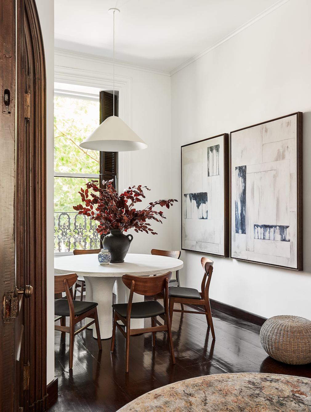 This Carroll Street brownstone, sensitively appointed by Chicago interior designer Dan Rak, puts one in mind of poet Marianne Moore’s Brooklyn, when “An atmosphere of privacy, with a touch of diffidence prevailed, as when a neighbor in a furred jacket, veil and gloves would emerge from a four-story house to shop at grocer’s or meat-market.” Not that Rak has taken a stroll down memory lane or opted for a retro vibe. But with a light touch and a respect for period detail, he has fashioned a home that Brooklyn citizens of past might well feel at ease within.