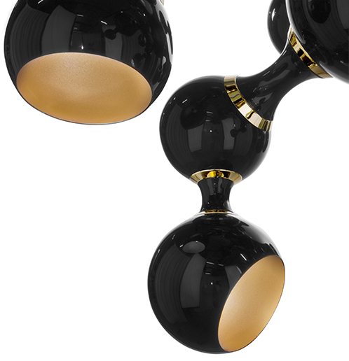 Atomic light pendant by DelightFULL is a modern design interpretation of the atomic age, inspired by the composition of the atom. Building this unique lighting design using materials such as brass, steel and aluminum, DelightFULL’s skilled artisans arranged it in an abstract composition, just like the non-conventional molecular forms. Both a glossy black and a gold plated finish were used for the body, while glossy black and gold powder paint were the chosen finished for the shades. This stylish suspended ceiling light is the right fit for a contemporary living room, or even for a more modern master bedroom.