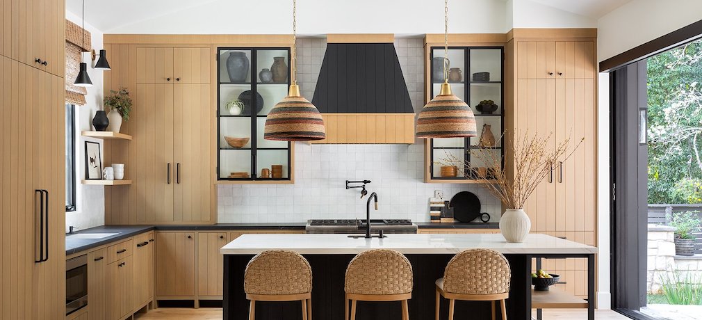 Anchored by bold, offset volumes and a palette of walnut, concrete and shou sugi ban, this Santa Monica home opens wide to the outdoors, blurring the line between courtyard and kitchen.