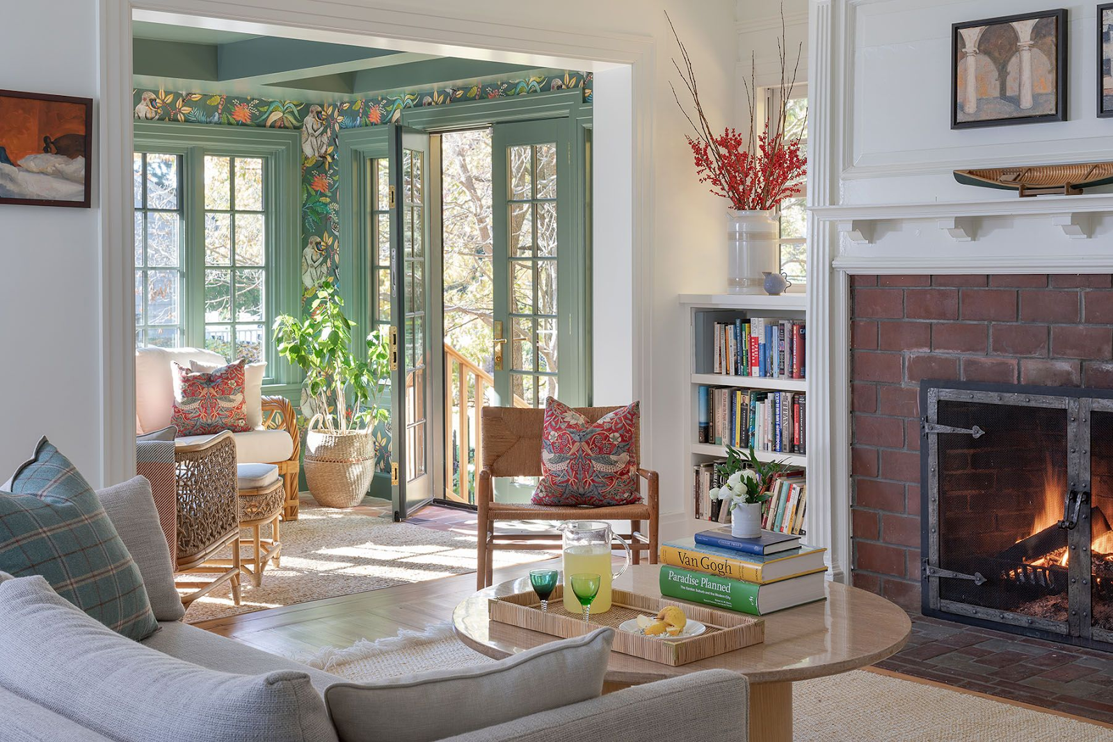 This cozy yet vibrant living space blends classic charm with fresh, nature-inspired details.