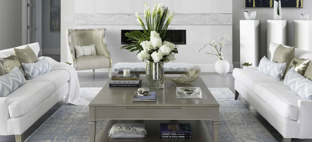 This was a living room Dwayne designed for a home in Naples, Florida. The gold accents tie the room together, giving it a fresh and calm feel.