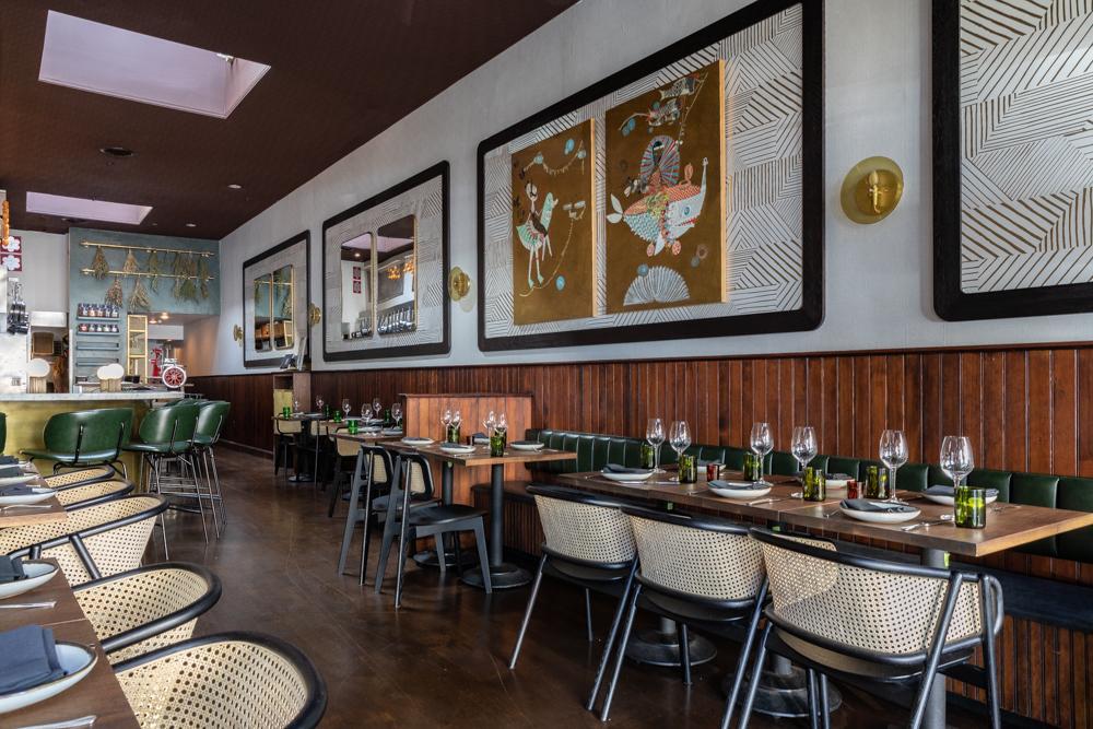 At the SPQR restaurant, Hannah Collins enhanced the space for chef-owner Matthew Accarino’s Italian dishes, infusing iconic emerald and brass touches while highlighting cherished artworks, creating a rejuvenated yet familiar ambiance.