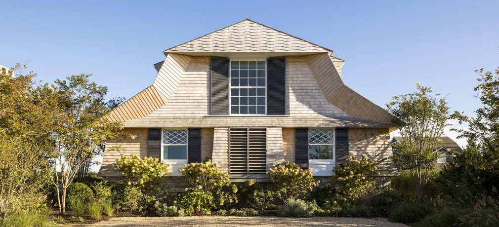 Pictured here is the Watch Hill Aerie found on a peninsula in Rhode Island. It’s covered in Alaskan yellow-cedar shingles and has windows that extend from the floor to the ceiling, allowing tons of natural light. Photo by William Waldron.