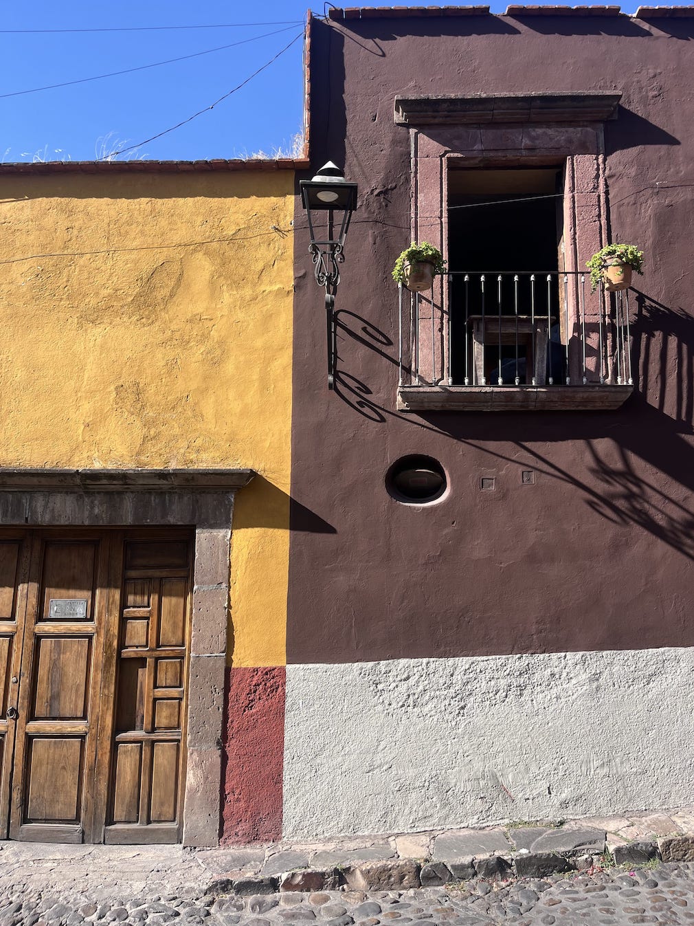 In Guanajuato, it wasn’t the grand cathedral or the main plaza. I was getting lost in the maze of the streets when an adorable little house caught my eye — pink and blue, lined with plants. A simple little nod to how color really is the main star of the show in this city. It was right next to an alley that looked like it had moss growing all over the walls — turned out to be thick stucco just painted green. It reminded me that design doesn’t always have to be complicated. Sometimes it’s as simple as color and texture bringing a whole space, or a whole city, to life.
