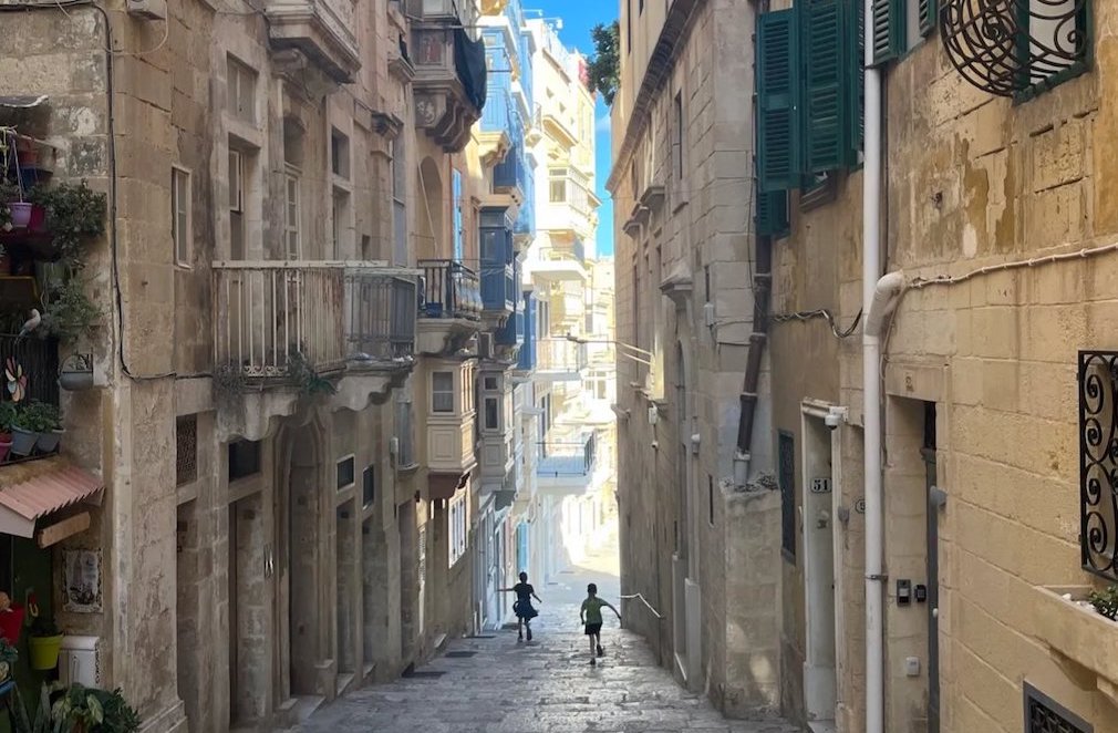 We’re living in a modern apartment in Sliema, looking out over the harbor to Valletta and Manoel Island. Sliema’s full of life and packed with beautiful old buildings — it was actually the holiday spot for Valletta locals back in the day. One thing I’ve really noticed is the traditional wooden balconies, or muxrabija. They come from Arab design and were used so people could see out without being seen — kind of like a built-in privacy screen. Most buildings are made from warm honey-colored limestone, so the timber balconies once became a sign of affluence.