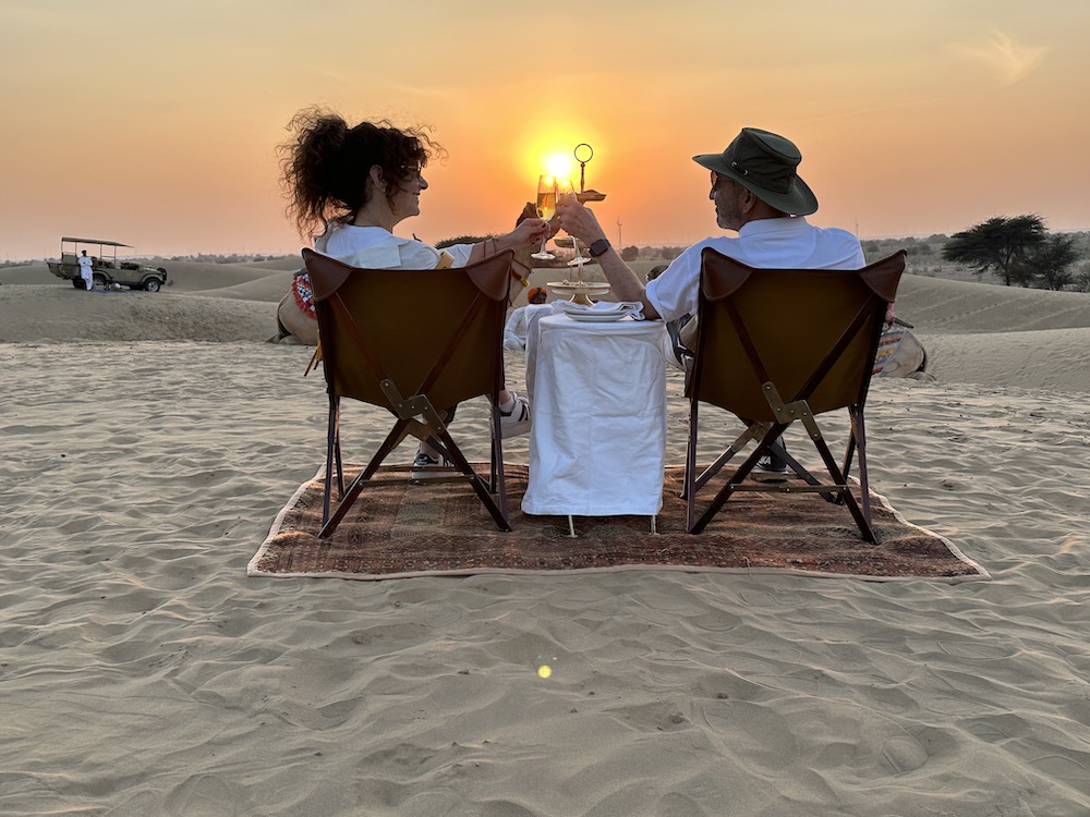Après camel ride with a glass of bubbly; Unforgettable.