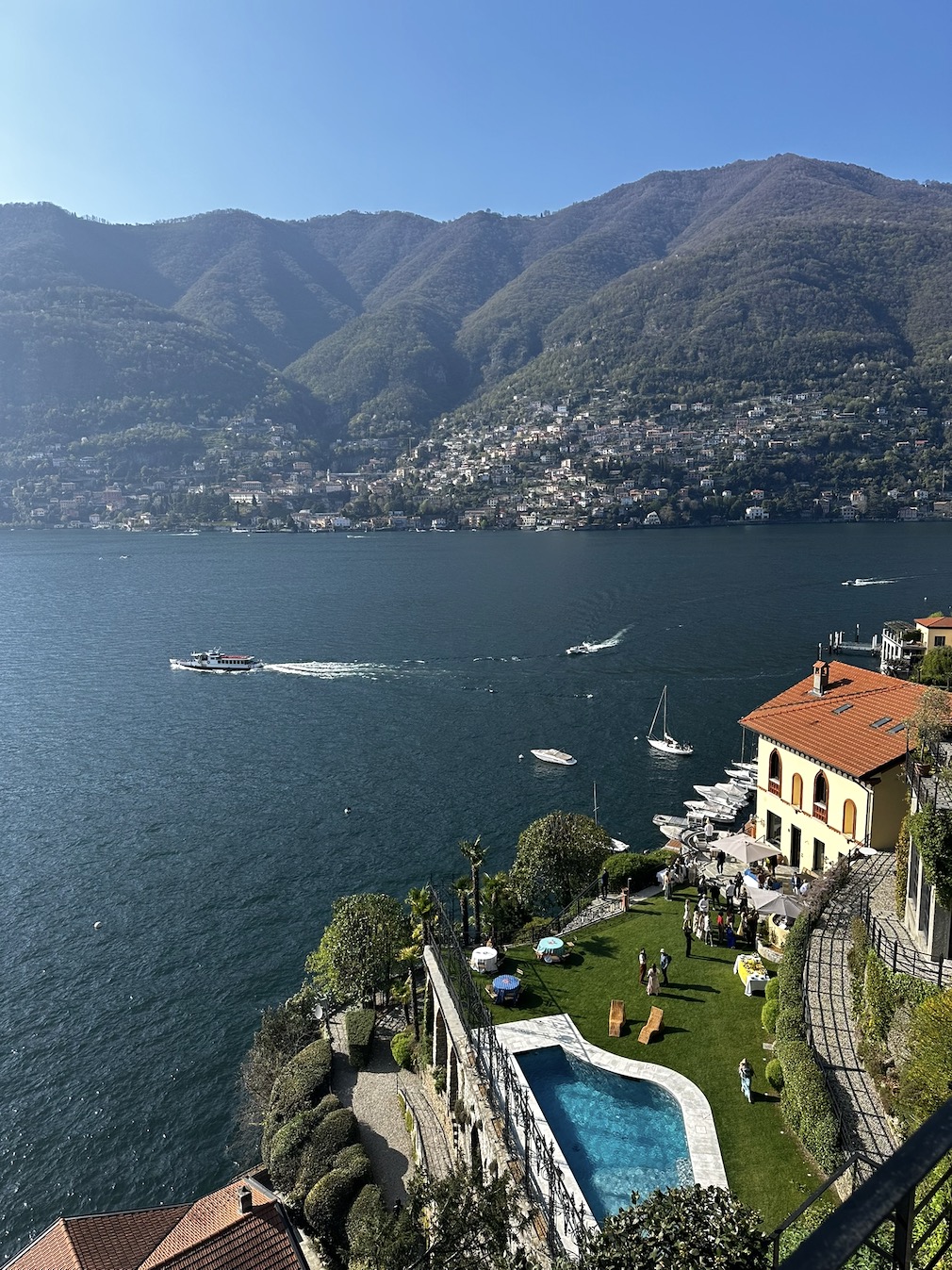 But it wasn’t just the villa itself. Wandering through the gardens, with moss growing over rocks, gravel pathways winding through intimate corners, and a private waterfall tucked into the landscape, felt like moving through a living painting. The seamless connection between indoor and outdoor spaces, with the lake literally at the doorstep, reminded me how architecture and nature can converse to elevate both. After exploring, we lingered over aperitivos and homemade lasagna, the sun glinting off the water beyond.