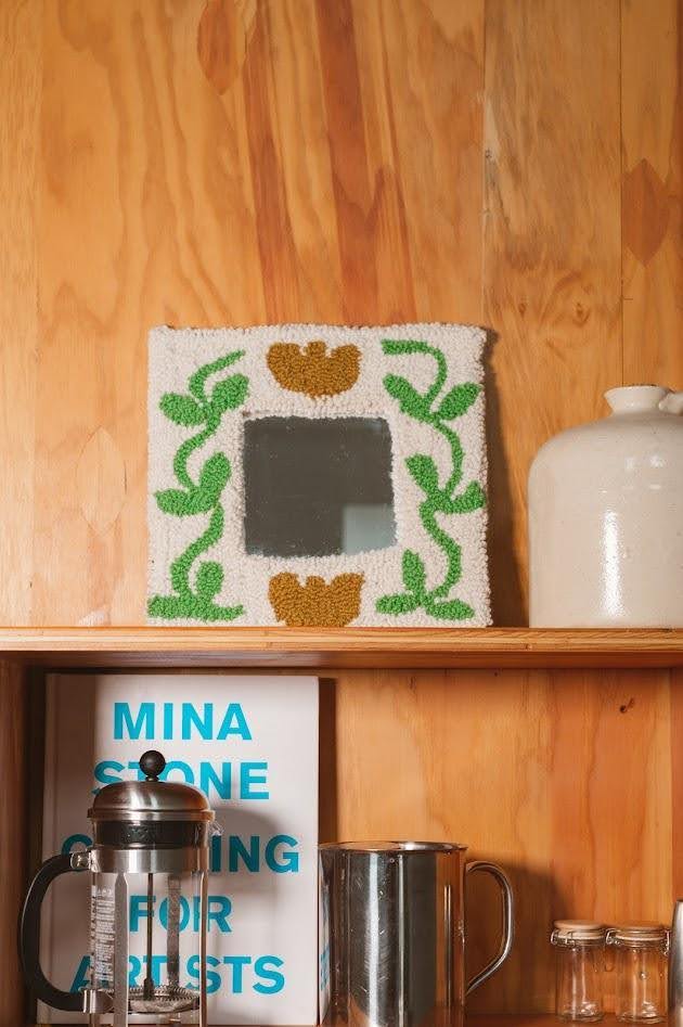 Cait Quinn is a fiber artist and the creator behind Magnolia Mercantile, a home goods brand made in her studio in Ann Arbor, Michigan. With a love for texture, color and craftsmanship, Cait creates pieces that bring a sense of warmth and intention to everyday life. What began in 2015 with a curiosity for weaving has grown into a collection of handmade goods — from woven and tufted pillows and wall art, to screen-printed goods, and even stickers. Her work blends artistry and utility, drawing inspiration from natural materials and vintage design. Cait manages this business alongside working as the events and social media manager for Leon Speakers. Learn more about Cait and her fiber work in today’s DesignHer.