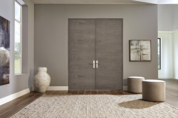 TMF1000 | “We love these simple flush doors in plain sawn white oak with grey mist stain. This is a great way to warm up a contemporary interior.”