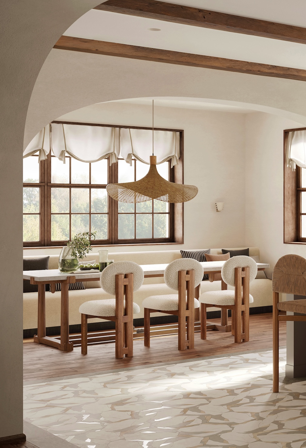 Natural materials, prioritized whenever possible, were chosen for their ability to accrue character and patina over time. For the upholstery, the team opted for durable performance fabrics and washable slipcovers for easier maintenance and a more worry-free approach.