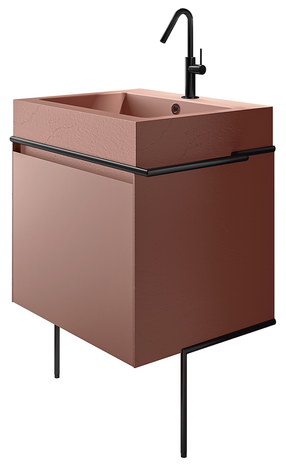 The versatile solid surface Tuby Telaio Console, shown here in Corallo, can be designed like building blocks, giving designers almost endless options.