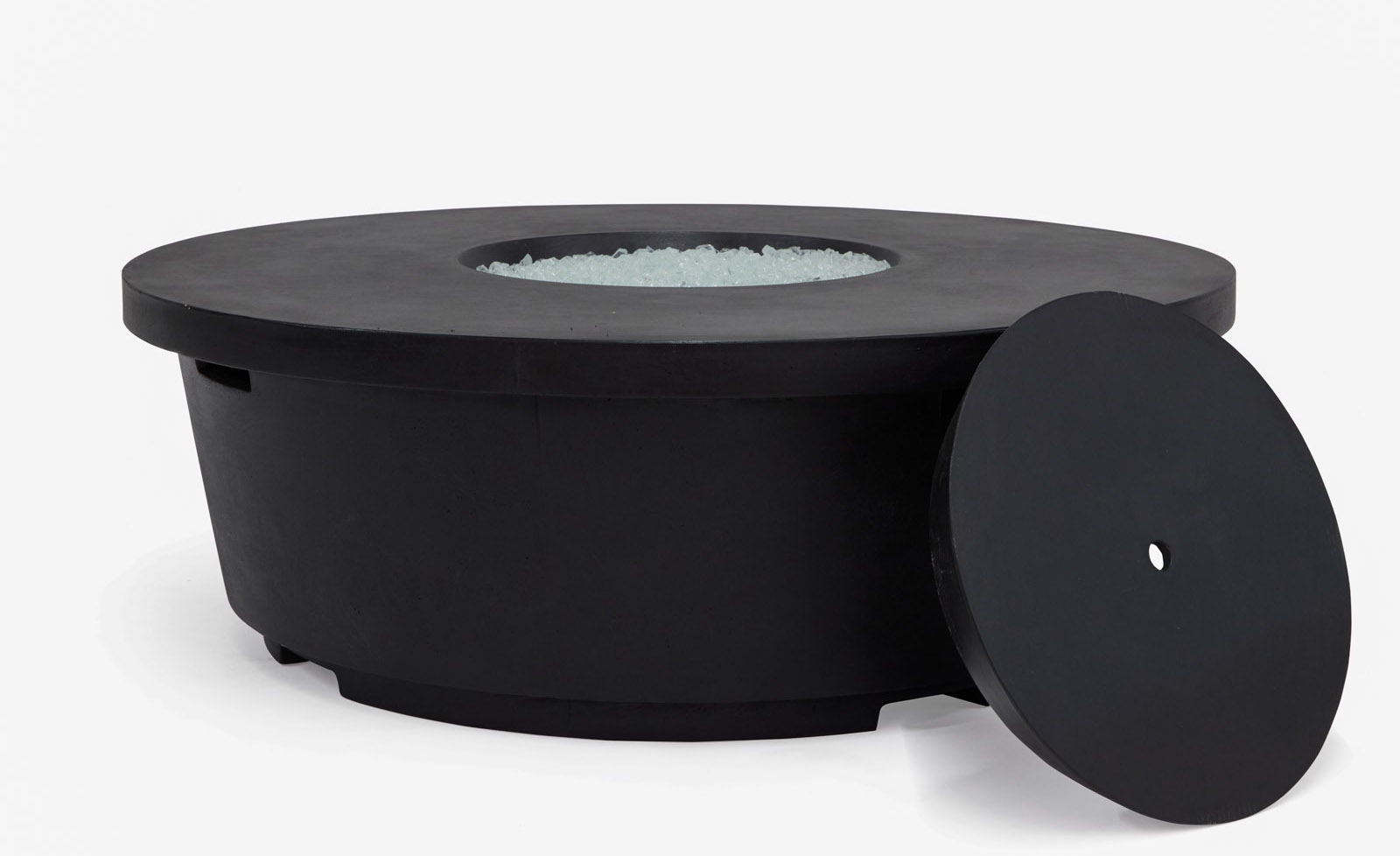 Designed with modern elegance in mind, the center of the Glow Fire Pits features fire glass that disperses warmth evenly and offers a more upscale aesthetic than commonly-used lava rock.
