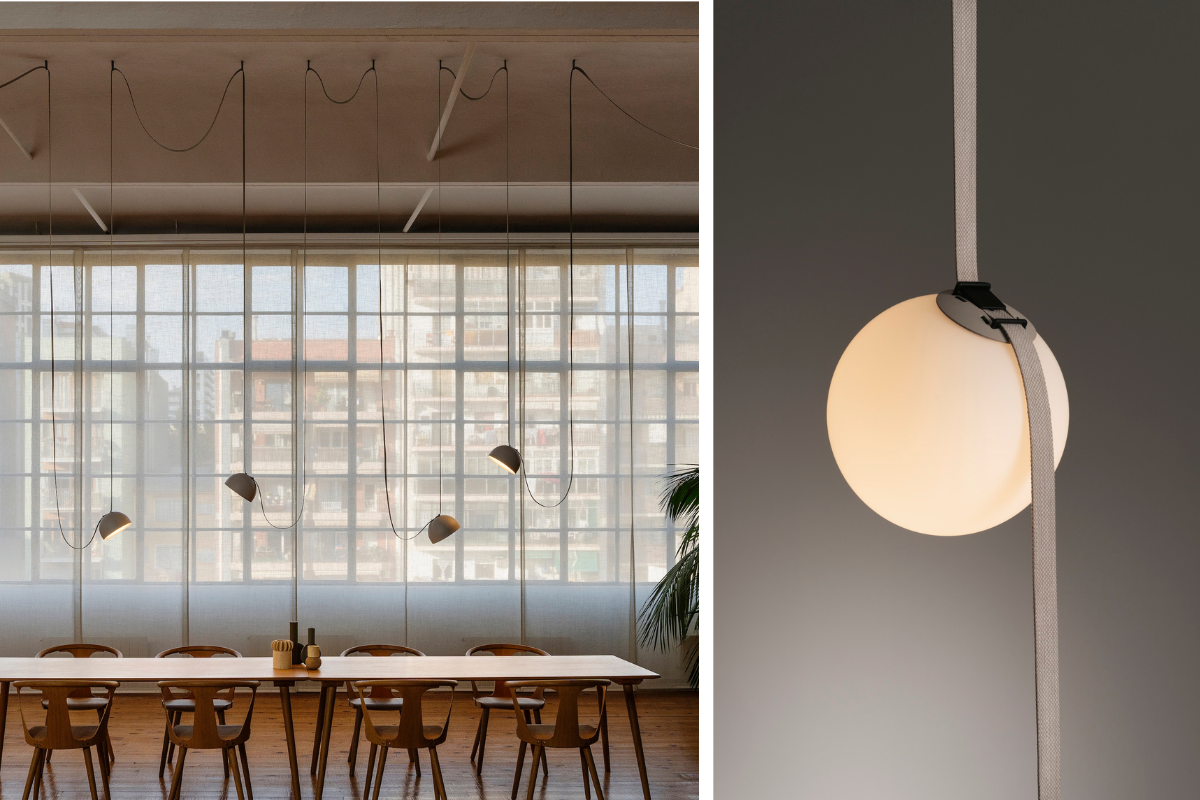 Plusminus is a versatile lighting system that takes the concept of the light rail track system to a new level. The conductive textile belt at its core allows for free placement of the luminaires and the creation of unique light solutions on the spot.