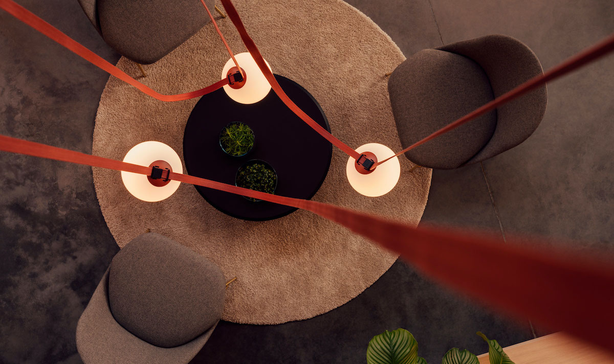 Plusminus is a versatile lighting system that takes the concept of the light rail track system to a new level. The conductive textile belt at its core allows for free placement of the luminaires and the creation of unique light solutions on the spot.