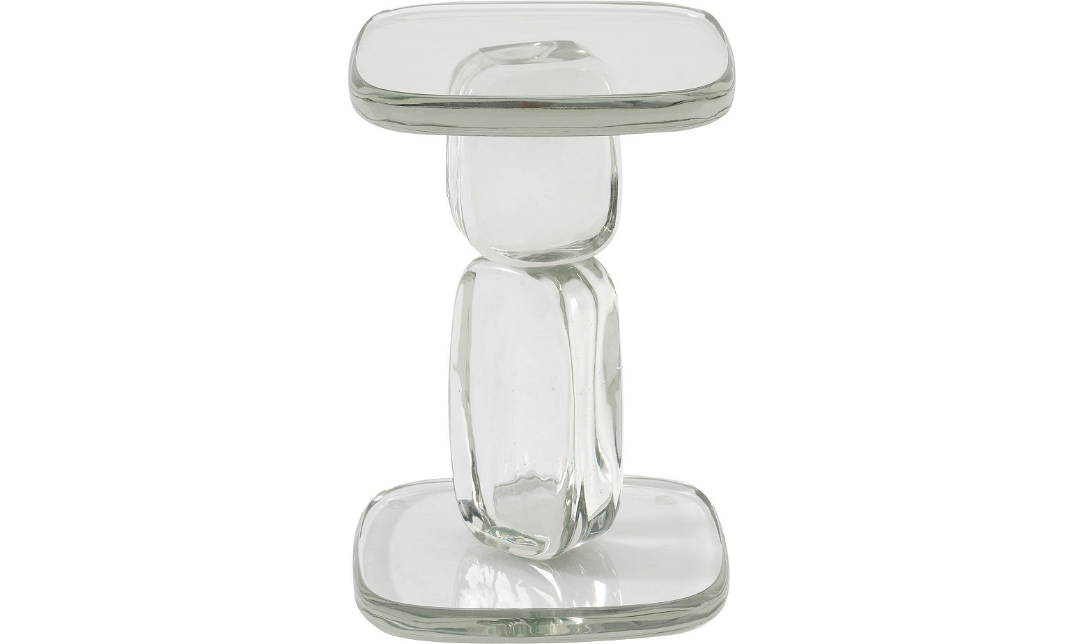 Designed by Paola Navone Cast Murano, this table offers a curious and unstructured shape entirely crafted in Murano glass, with irregular shaped glass blocks that appear to balance on each other.