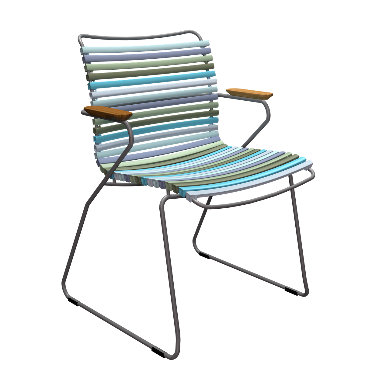 Designed by Henrik Pedersen, the slats (lamellas) of this chair can be “CLICKed” on and off – which makes it possible to modify the look of the chair simply by mixing the different colors. Bamboo armrests.