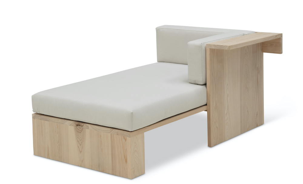 The Marais indoor/outdoor chaise lounge is a laid back lounger with built-in side table. Handmade to order from Doorman’s New Orleans workshop, the piece can be built in either new or reclaimed cypress from historic New Orleans homes.