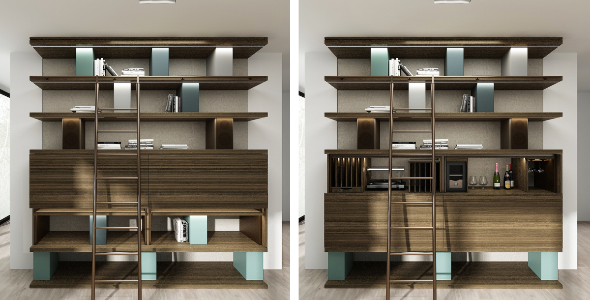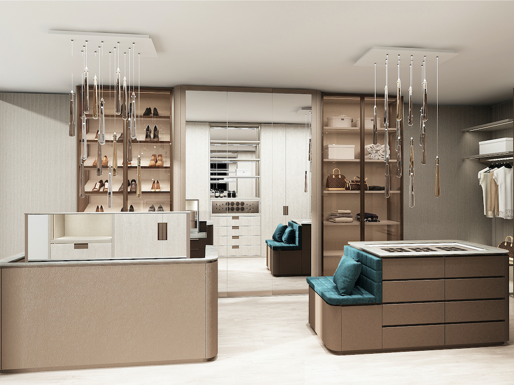 Eggersmann might be the purveyor of modern kitchens, but its Laguna Niguel showroom shows the brand’s innovation cannot be confined to one room. Highlights include a velvet-lined safe, wardrobe with integrated power AC/USB stations, as well as a living room with a media room decked out with a fireplace, bar, and concealed storage. Meanwhile, a “gentleman’s lounge” is dressed up with a humidor, whiskey bar, and HiFi system—showing customers everything eggersmann has to offer.