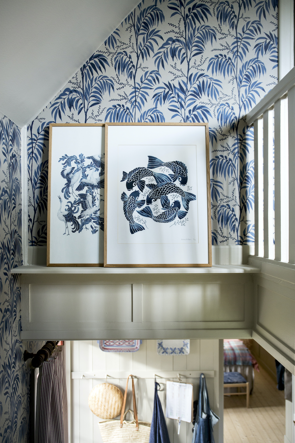 Cofounder with Daniel Långelid of the wallpaper company Långelid/von Brömssen, she and her husband, Edward, acquired the property thirteen years ago and over time, have transformed the 1920s fisherman’s cottage into a comfortable family home. “The house is white, quite tall and built of wood,” explains von Brömssen. “The fishermen always painted their homes white, partly so that the houses could be seen from the sea, making it easier for them to find their way home in bad weather, and partly because white paint was the cheapest to use. We have chosen to renovate the house in the 1920s style.”