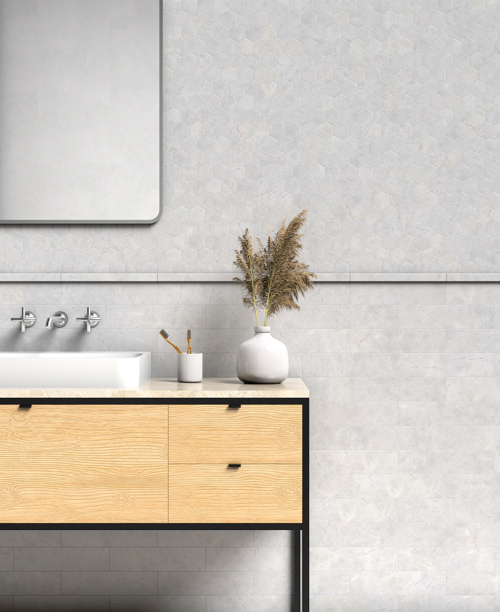 Avalanche Honed Marble Collection, from Marble Systems, evokes the majestic stillness and purity of a mountain snowfall with soft gray hues that reflect nature’s calm yet commanding presence. From floor and wall tiles to mosaics and refined moldings, this collection offers seamless transitions and versatility for both modern and classic architectural designs. Coverings 2025 exhibit booth # 3008.