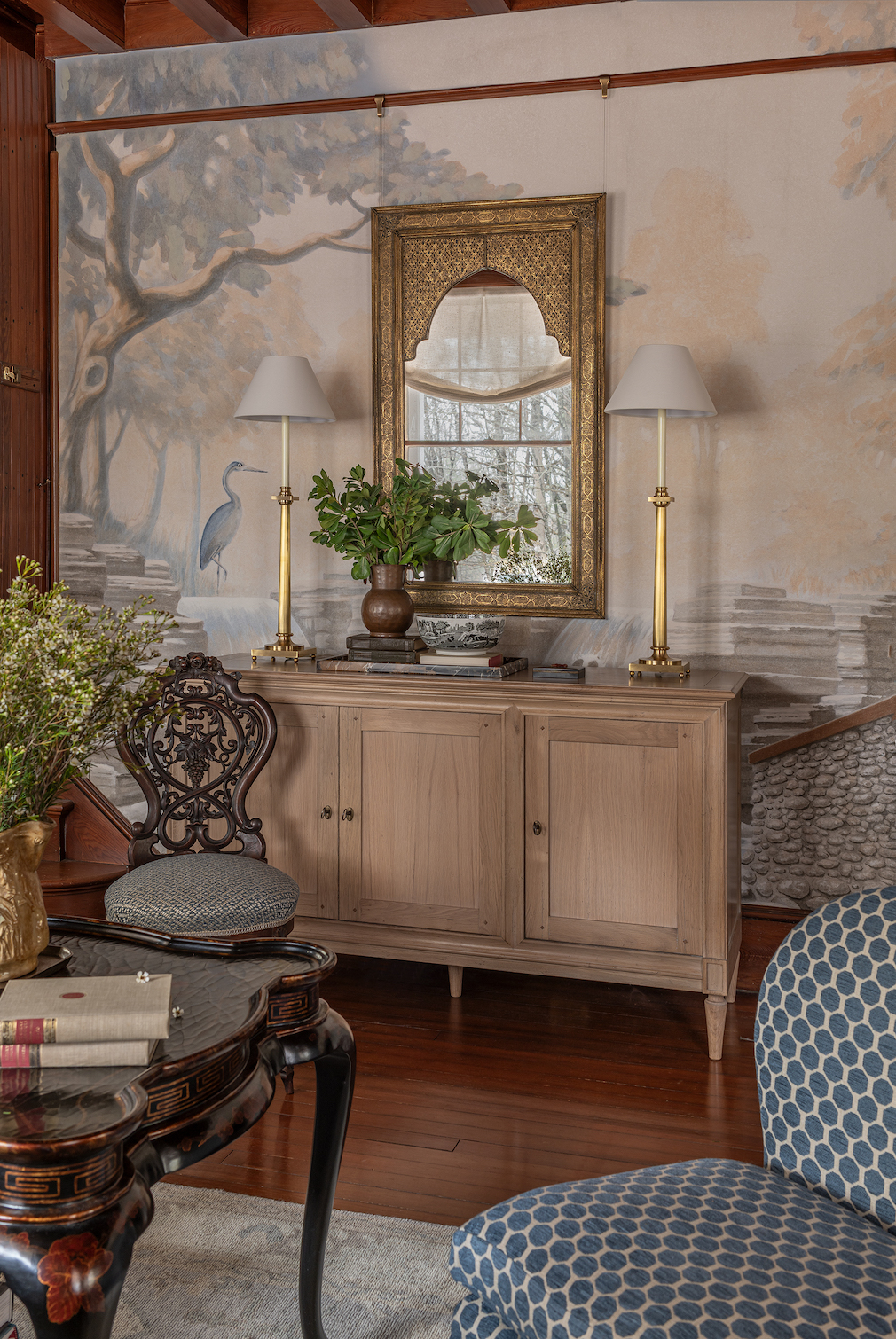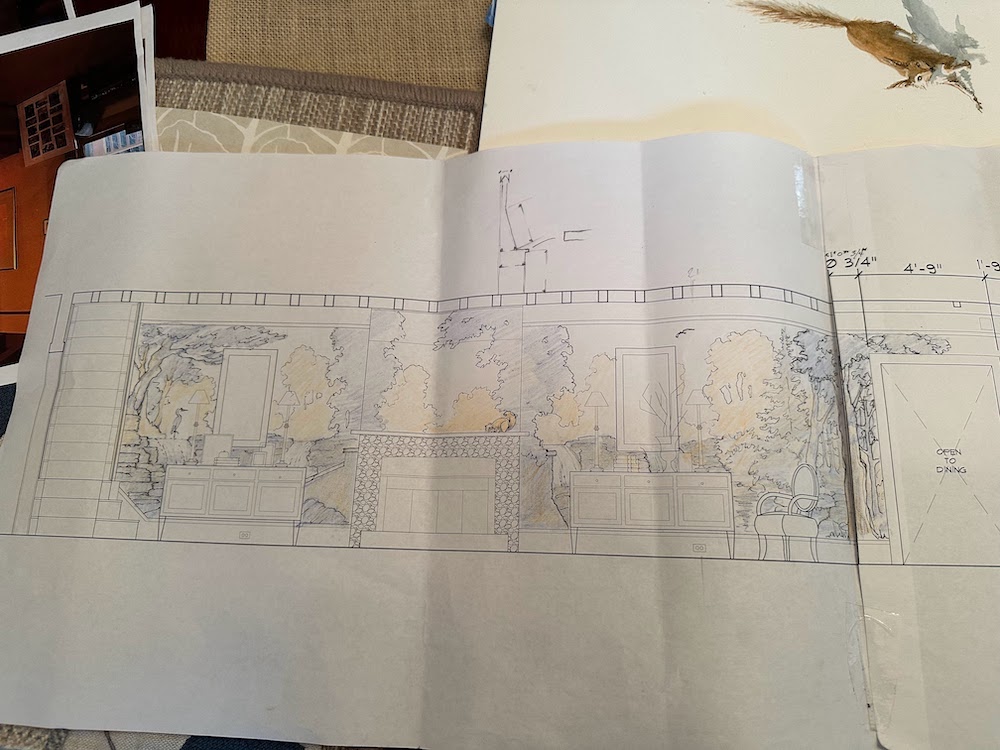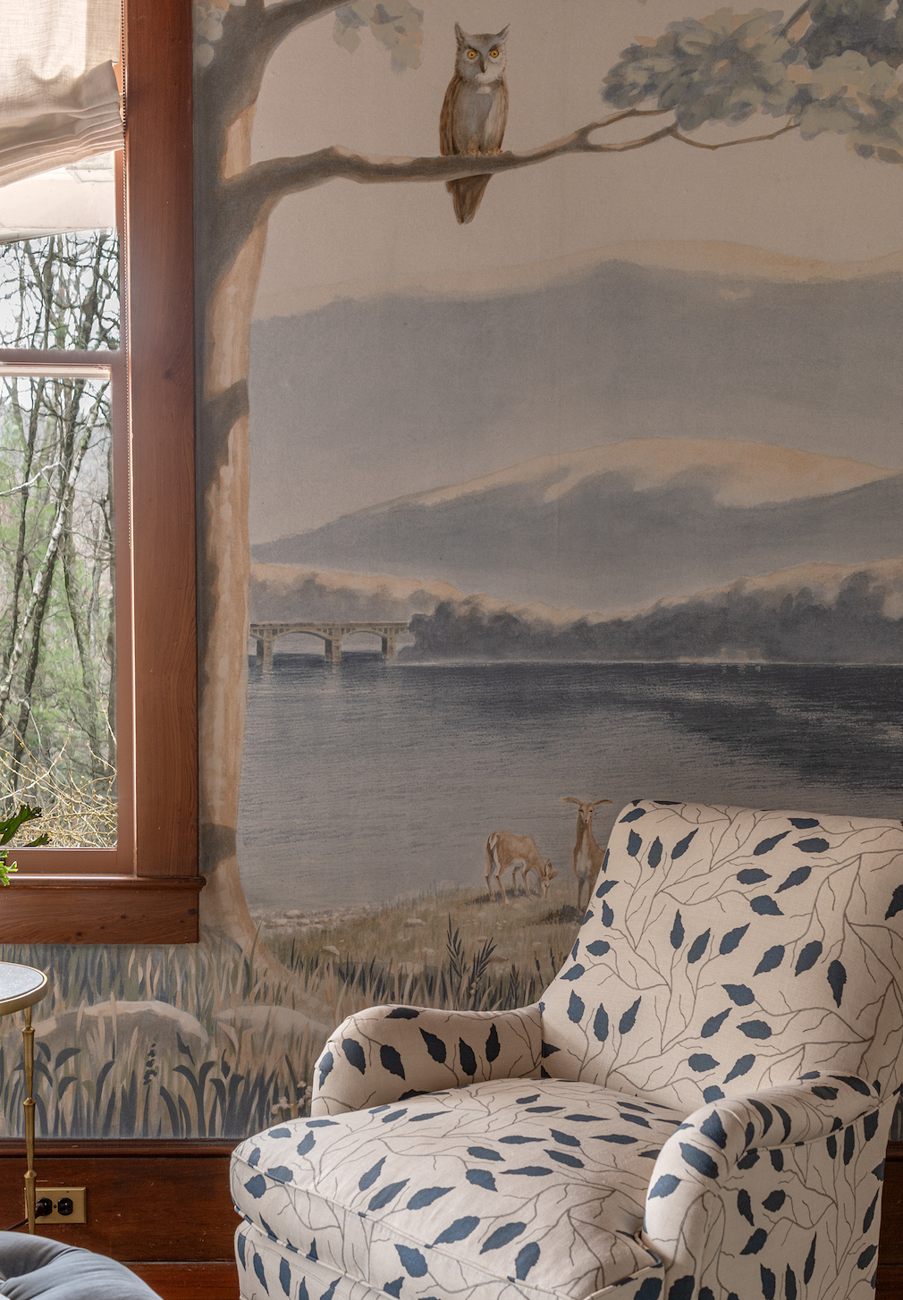 Greg Feller: From the outset, I envisioned a mural as the centerpiece of the room. When I joined the project, the homeowner spoke passionately about the history of the house — built by one of the principal engineers of the Ashokan Reservoir in the early 20th century. The reservoir, which still provides over 40% of New York City’s drinking water, became the inspiration for the mural and living room.