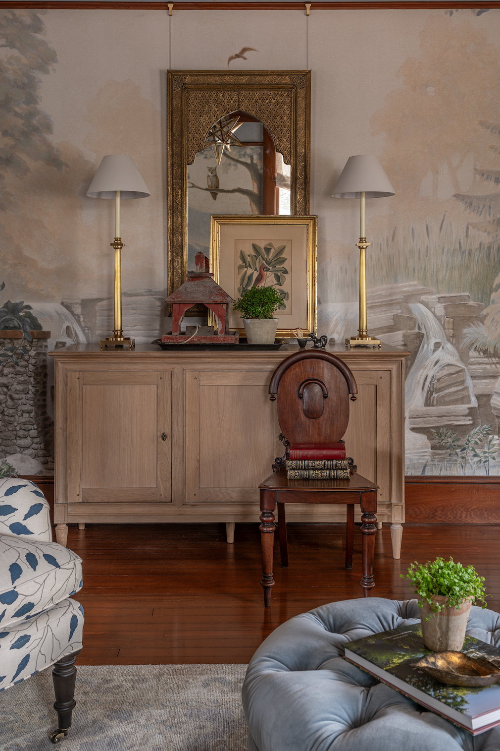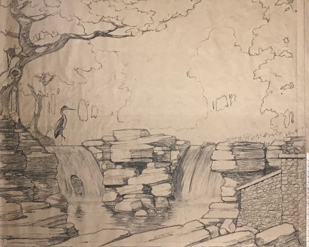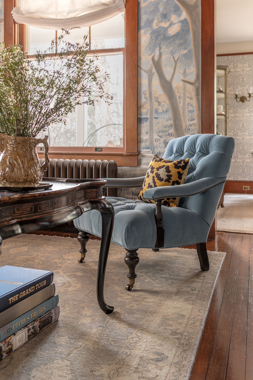 Greg Feller: From the outset, I envisioned a mural as the centerpiece of the room. When I joined the project, the homeowner spoke passionately about the history of the house — built by one of the principal engineers of the Ashokan Reservoir in the early 20th century. The reservoir, which still provides over 40% of New York City’s drinking water, became the inspiration for the mural and living room.