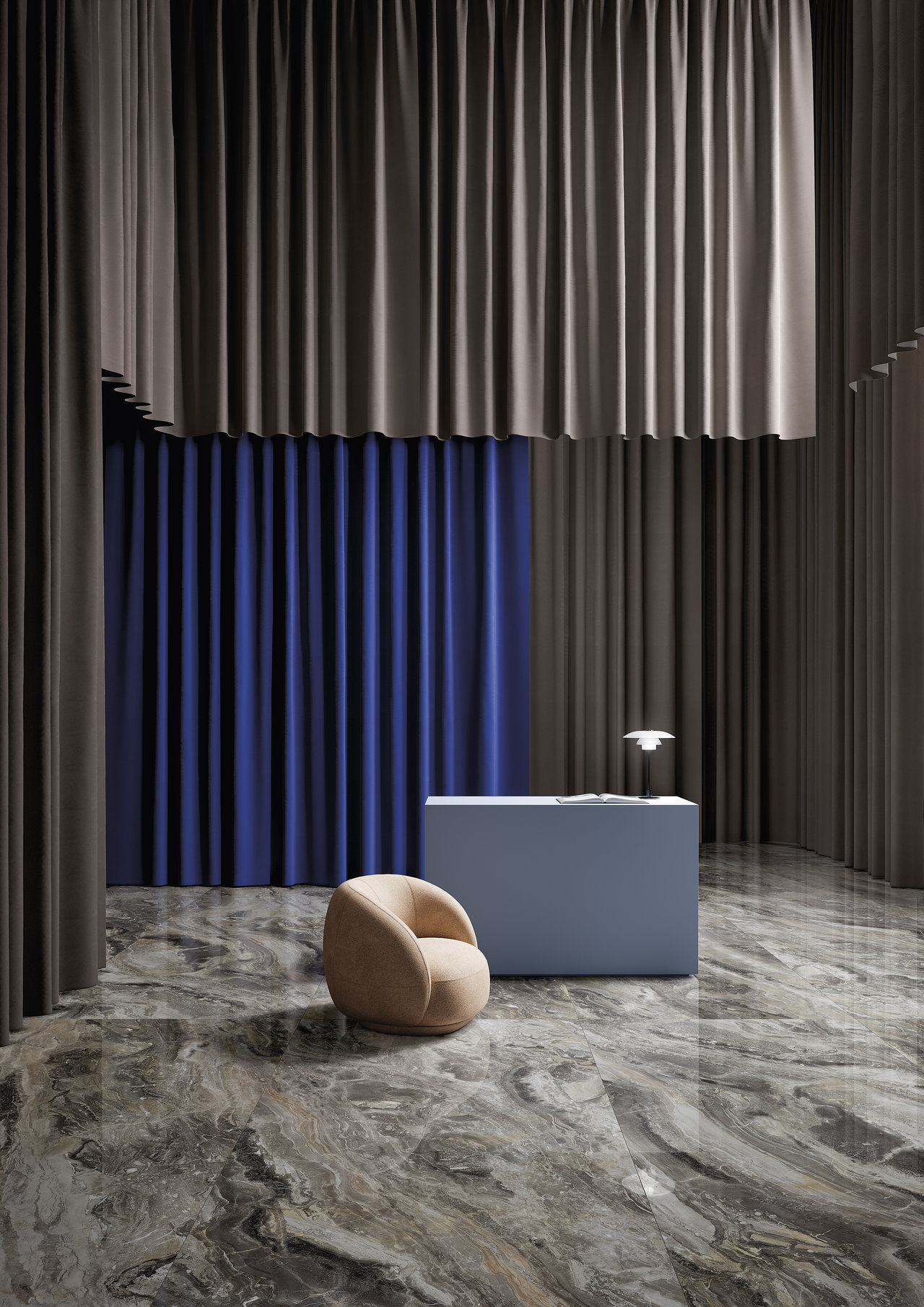 Surfaces are enhanced by the two available finishes, polished and semi-polished. The wide variety of sizes meets the needs of customers and installers. The large 150×300 slabs, the 250×100 cm size, recently introduced along with the 100×100 cm, prevents any cutting waste when cladding. The compact size also allows for the material to be transported in tower buildings and skyscrapers, using lifts or goods hoists.