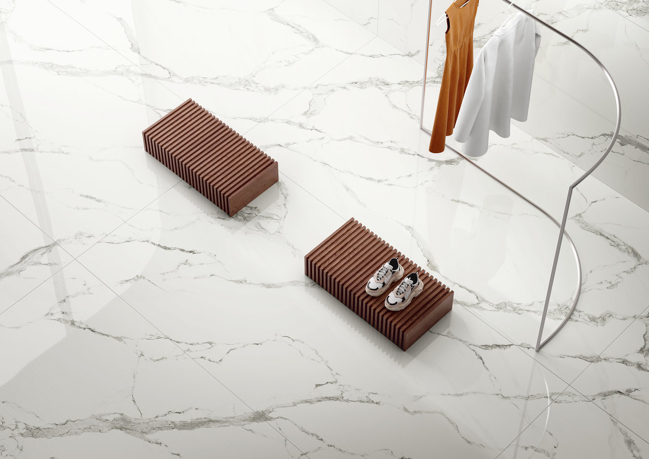 Calacatta Bellissimo enriches the Maximum Marmi collection with refined grey veining that stands out on the white background. Refined grey veining on a white background brings brilliance and elegance to private homes and public or commercial spaces.