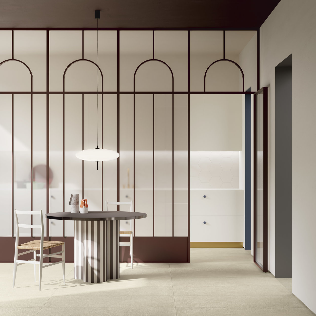 Roc de Bourgogne is inspired by the famous stone of Burgundy, France. The authentic appearance and original texture of this famous stone is perfectly interpreted into a cutting-edge surface that has all the advantages of porcelain tile. The three neutral tones—Beige, Blanc and Gris— in the collection are suitable for various interiors, featuring a “clouding” effect that provides movement and highlights the diversity of the natural material. The wide range includes different sizes, thicknesses and finishes, and offers designers and architects a living surface, for both interiors and exteriors, to use as flooring, cladding or for ventilated façades.