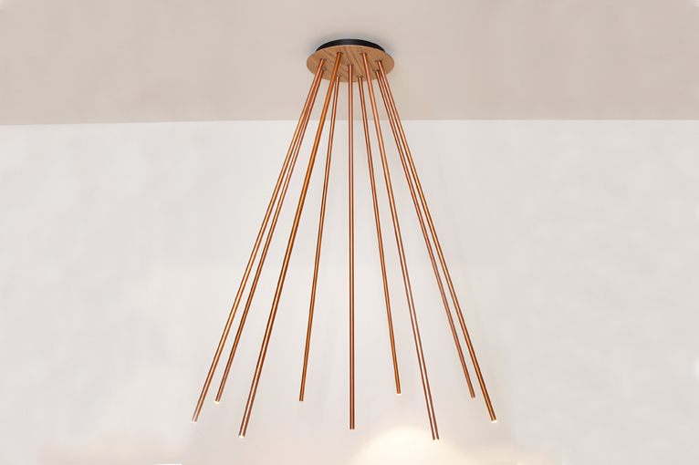 Forester series | The inspiration for forester comes from a group of trees or a forest. The lamp is composed to copper pipes attached to a steal base with a plate (wood plate is optional). The copper pipes are linked to the base by a bearing ball mounted in the base. This is done to further enhance the usability of the lamp by allowing the user to simply move the pipes in all directions to suit changing needs for illumination.