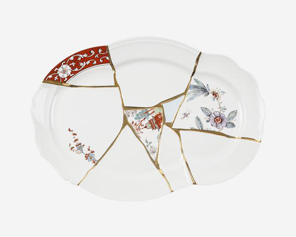 The delicate porcelain of these pieces is glorified and enriched with gold fragments for a tableweare collection made of charming and unexpected compositions.