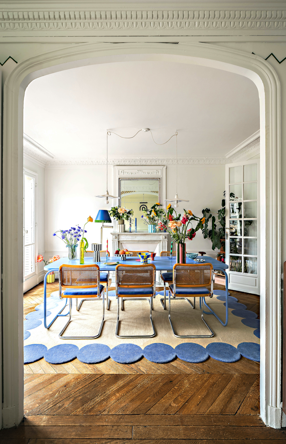 The Paris apartment of Alice Gras and Anaïs Seguin, founders of the media company MOYO Paris and the creative studio Delajoie Editions, is a classic Haussmannian affair, a constellation of generously proportioned rooms detailed with handsome herringbone floors and decorative moldings. Dating from the 19th century, it has likely seen all sorts of design schemes over the years, from the clutter of bibelot-topped tables and antimacassar-draped bergères to the glass-and-metal motifs of the Bauhaus to Danish modern, and more.