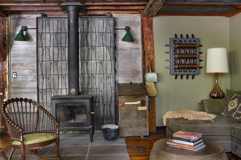 So, what on earth possessed Amy and her artist-builder husband Matt to buy? “The price was right,” Matt says, “and I couldn’t stop thinking about it. I felt sad for the house. I was so frustrated trying to find affordable studio space in Brooklyn that I just took all my tools up there and started working.” Amy remained in New York, traveling up on weekends, sometimes arriving to demolished walls that exposed rooms to the outdoors. But for Matt, “It was an opportunity to make one of my sculptures into a whole environment.”