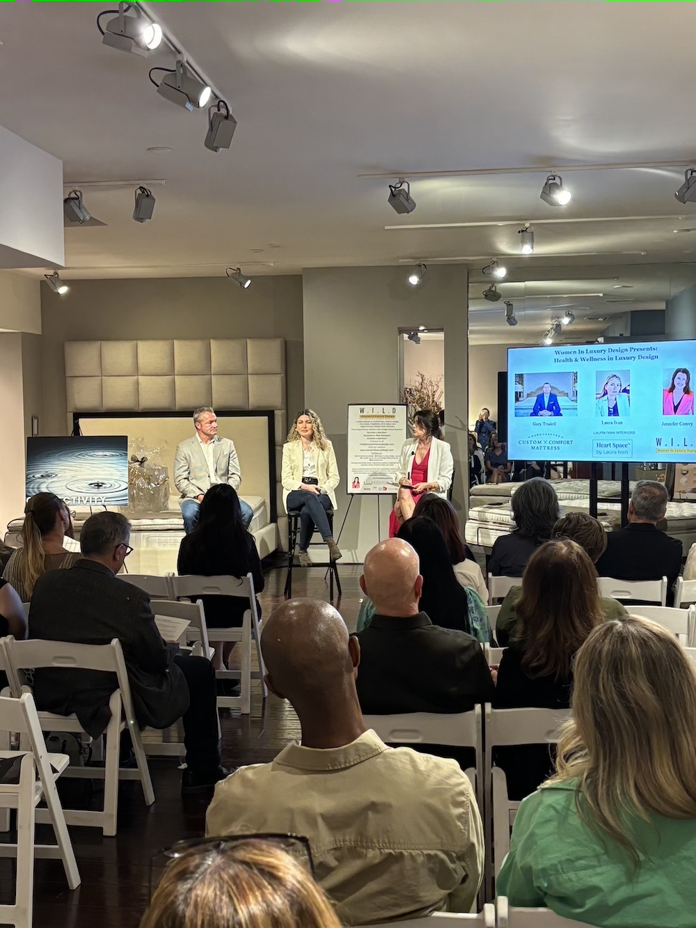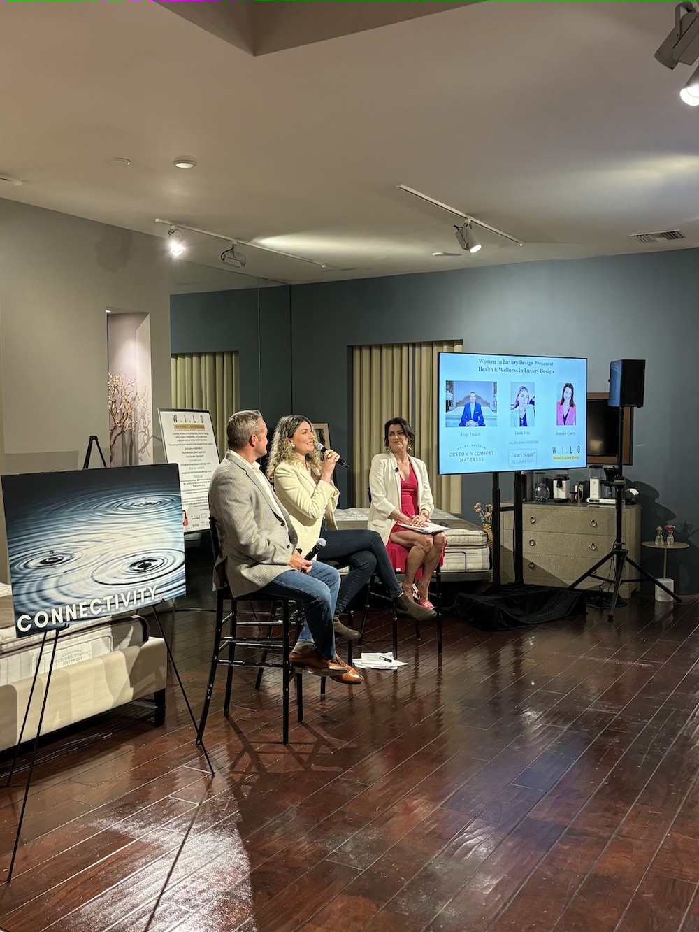 Held at Custom Comfort Mattress in West Hollywood, CA, three expert panelists came together to discuss how we can all benefit by creating environments and spaces that calm and soothe all of our senses, so we can rest and rejuvenate with health and wellness in mind. Jennifer Convy, CEO of W.I.L.D, led the discussion alongside designer Laura Ivan, who is also a certified health, and wellness coach and Gary Trudell, owner of Custom Comfort, on what’s new, what’s available and what’s in demand for the modern lifestyle homeowner and hospitality client.