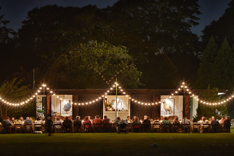 “Since the building once had a hayloft, we thought it would be fun to incorporate hay bales,” he adds. The bales offer flexible seating, either grouped or, for a more intimate option, separated.