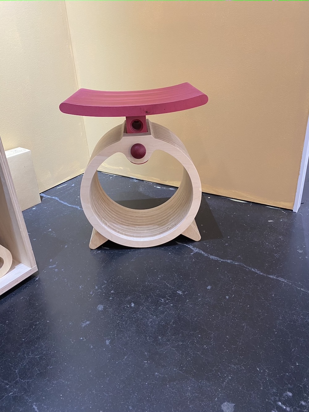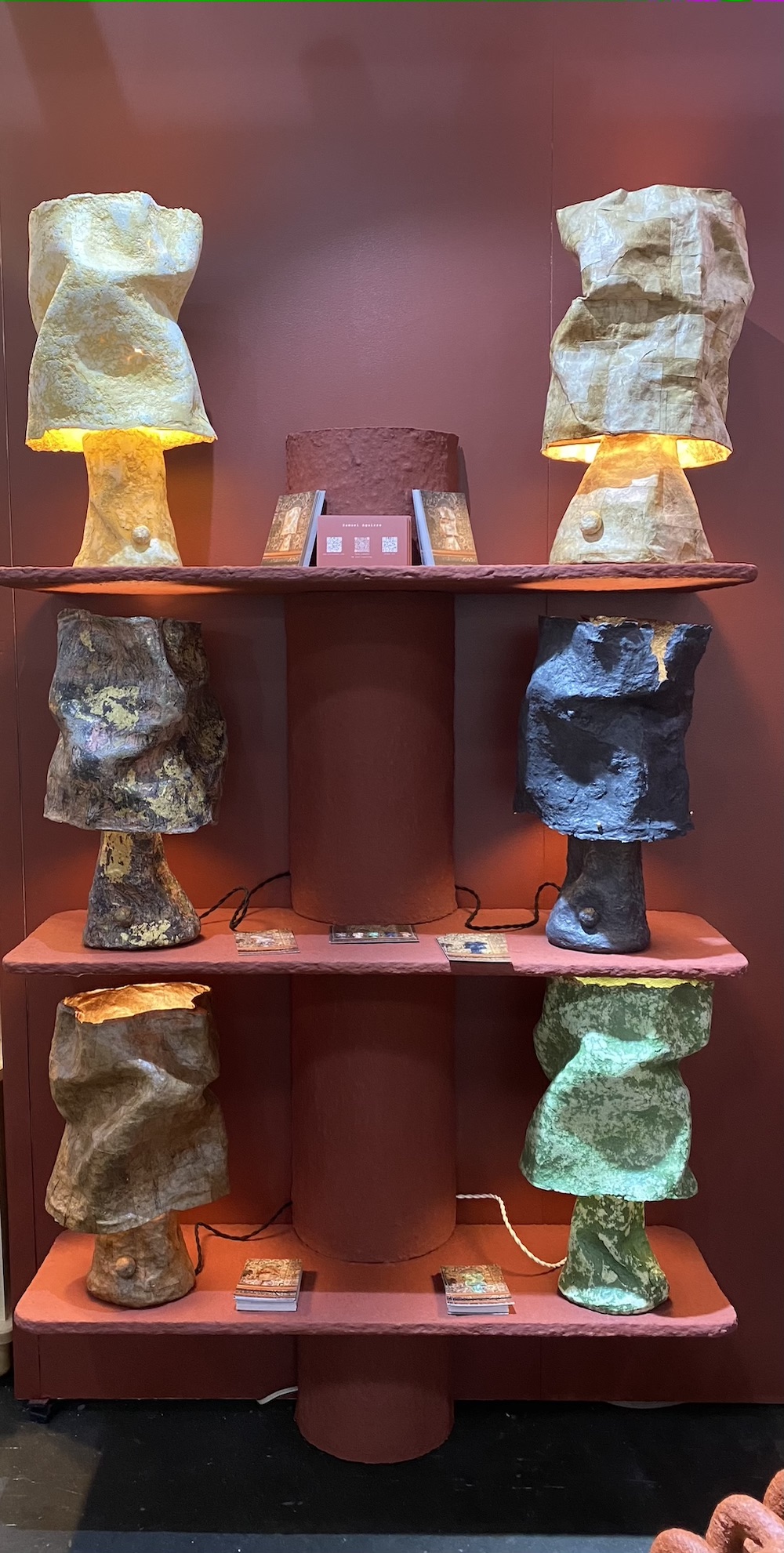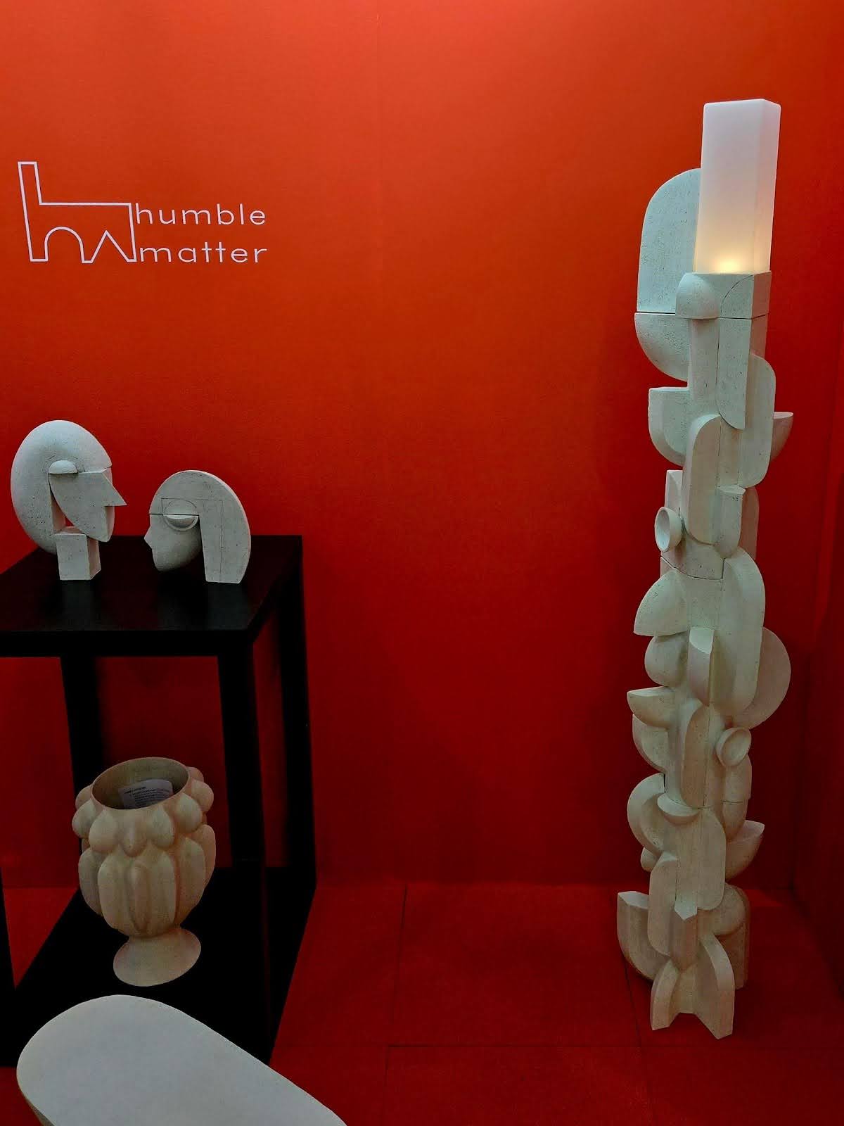 Bone-colored pieces from Humble Matter — a multi-media art and design practice that encompasses ceramics, furniture, lighting, sculpture, painting and drawing — really popped against the backdrop of their vivid orange display space.