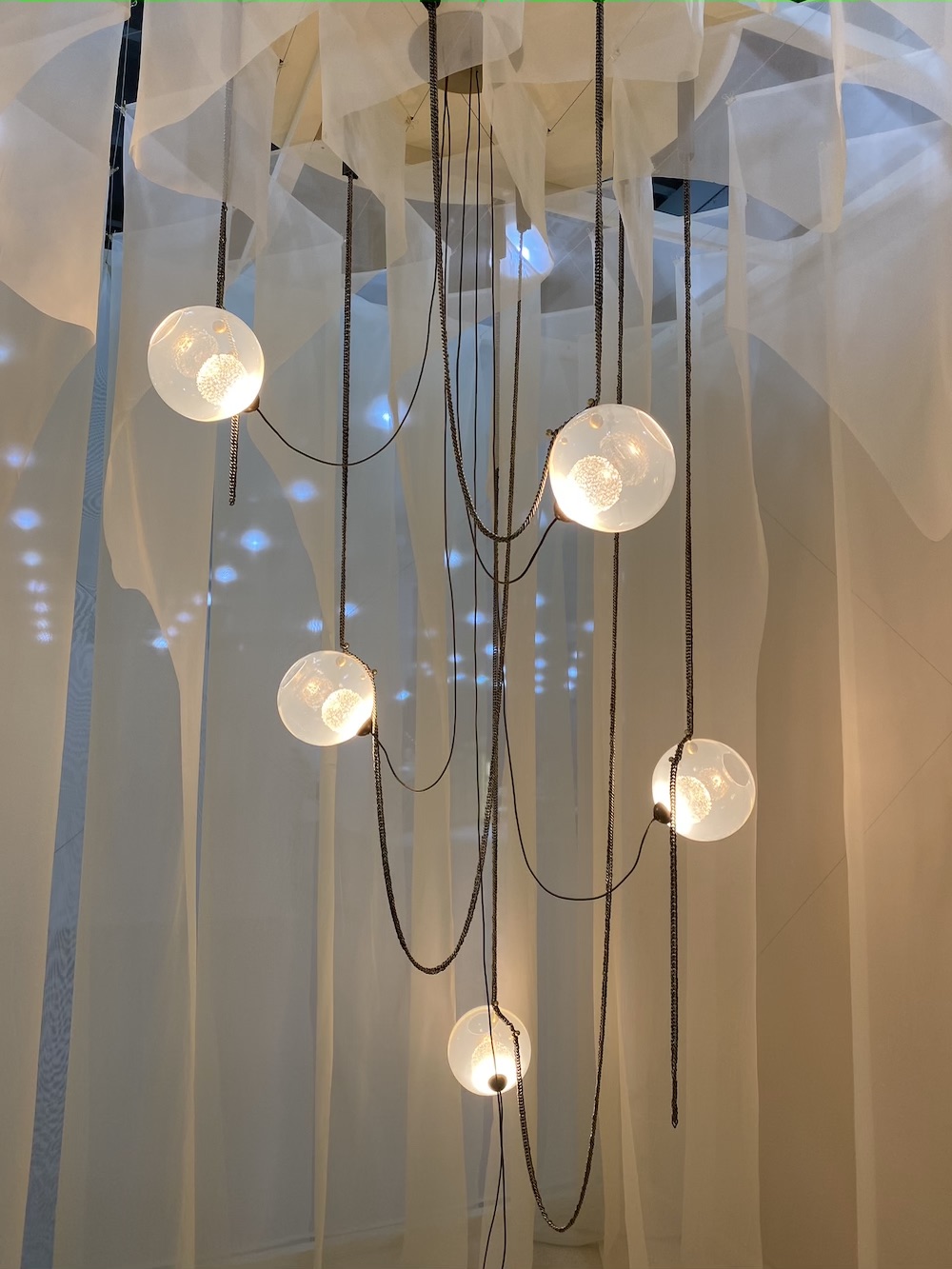 We got lost in an otherworldly daydream when gazing upon the lighting at Larose Guyon.
