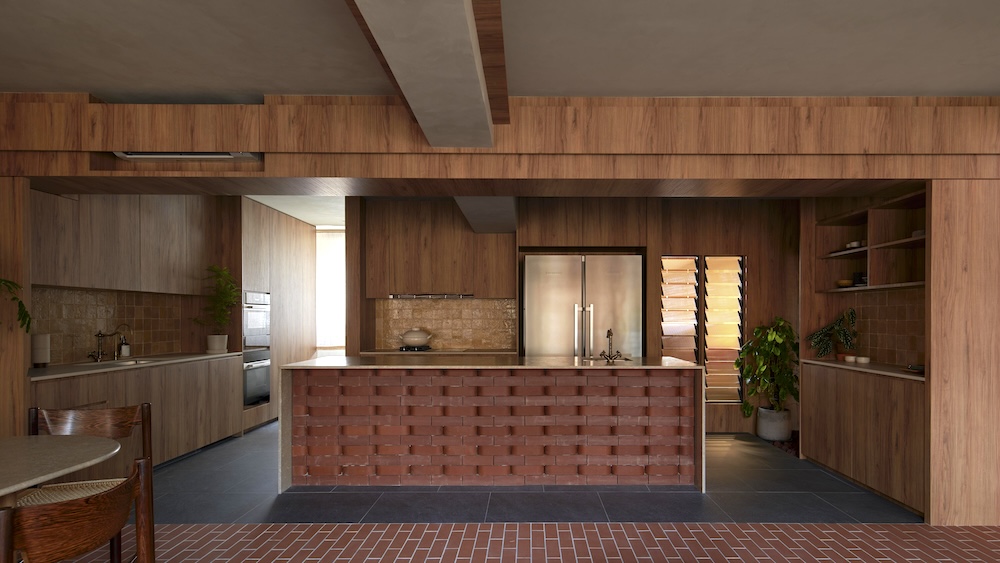 The design team began by abstracting the idea of a park within the home — a setting where plants are not only decorative additions, but rather are integral to everyday living. In reflecting on older public parks in Singapore, a distinctive, yet often overlooked element emerged: the double-bullnose brick. Traditionally used in outdoor benches, walkway edges, and planters, this brick is closely associated with the character of Singapore’s parks of the past.