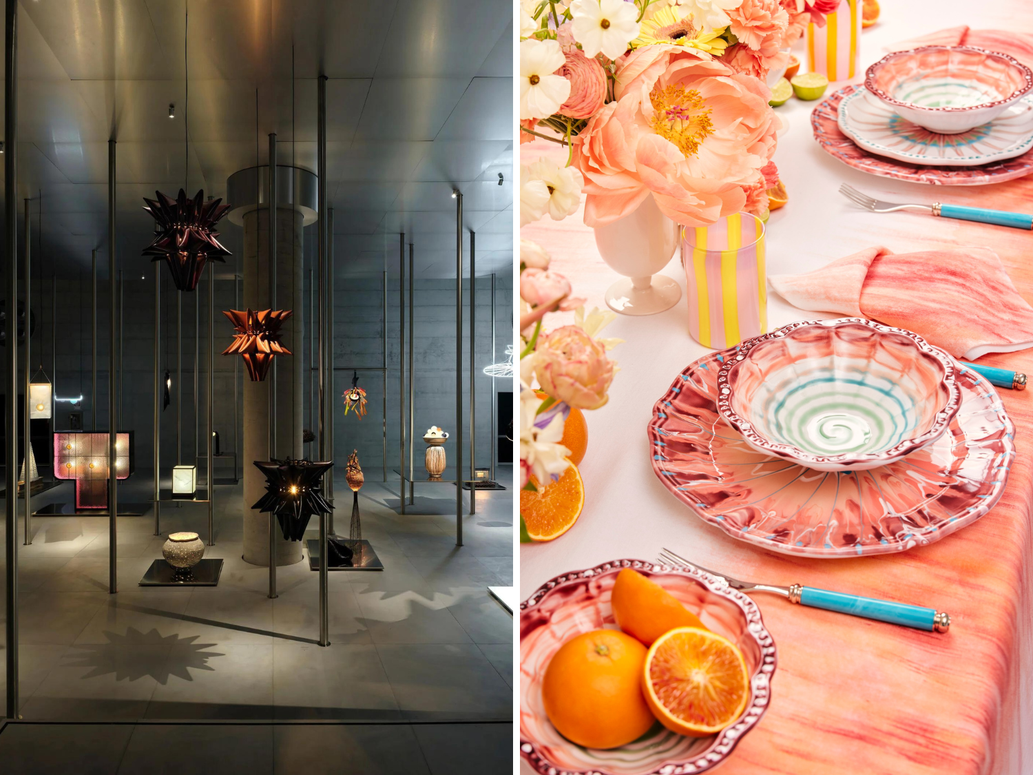 The line between fashion and interior design continues to blur, with renowned fashion brands making their mark in home decor. Loewe’s foray into this space, LOEWE Lamps, premiered at Salone del Mobile 2024, where the fashion powerhouse showcased a collection curated in collaboration with 24 international artists. This collection featured an eclectic mix of materials and artistic techniques, each piece a unique interpretation of light and form. Simultaneously, luxury shoe brand Aquazzura ventured into interiors yet again with its Riviera and Alegria collections. The Riviera line offers transeasonal charm with its woven bow designs, available in vivid coral and serene blue-green hues, perfectly complementing elegant Murano glassware. The Alegria collection captures the essence of southern Italian vistas with its hand-painted ceramics, offering a vibrant celebration of summer.