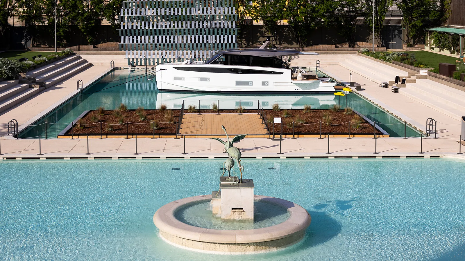 Innovative installations brought unexpected concepts to life, with Azimut’s Mooring by the Moon standing out for its creative approach to yacht design. This installation featured the Seadeck 6, a hybrid motor yacht that combines advanced technology with sustainable design principles dropped right in the middle of Milan. Set against the backdrop of Bagni Misteriosi, it invited attendees to experience the blend of luxury and environmental mindfulness, challenging preconceived notions of marine design.