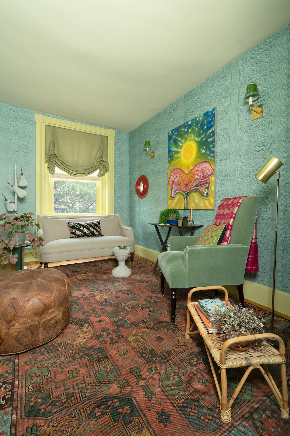 “I wanted to create a space of solitude, a place where someone could come and be by themselves. It’s a room where you can go to the secretary and write an old-fashioned letter, read a book, entertain a friend on the couch or take a nap on the day bed. If it was my house, this is where I would spend all my time, in a cozy chair.”