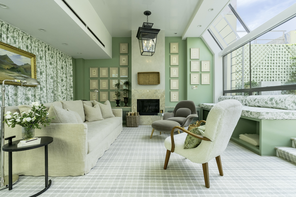 “Solariums were rooms where 16th century, wealthy Europeans would use to grow citrus trees in their houses. And I’m originally from California, so a lot of my work is Northern California meets New York City. So, this room is a mash-up of traditional with the freshness of the West Coast. If you poke around, you’ll see that everything is garden-related or citrus-related. You could be in France; you could be in Napa. And it’s a room for lounging and hanging out. A place to bring a cup of coffee and a book. It’s light, and polished, and airy.”