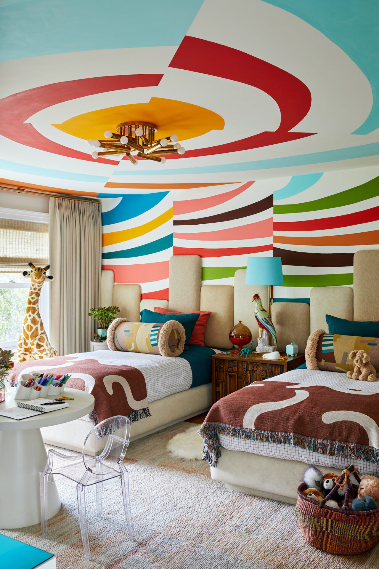“We were inspired by the circus and childhood experiences. We commissioned an amazing artist (Adam Sultan) to paint the ceiling and the murals, and we just wanted a really playful experience. It includes all the different patterns and fun shapes that a kid would just dream to be surrounded by in their space.”