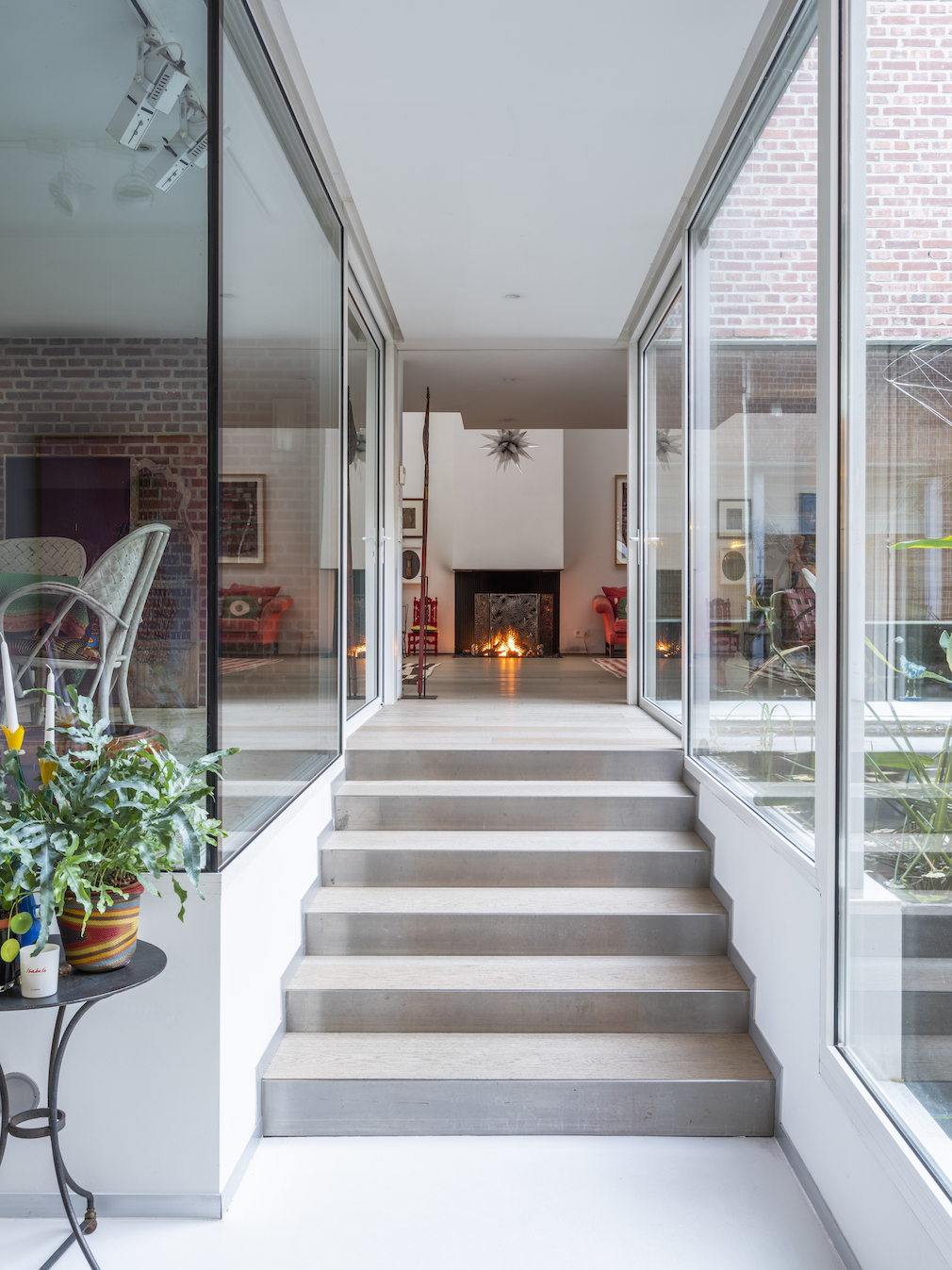 Enamored with the work of Antwerp-based interior designers Claire Bataille and Paul Ibens, de Borchgrave and her husband, Werner, recruited them to transform the garage into a three-level house, gallery and artist’s studio.