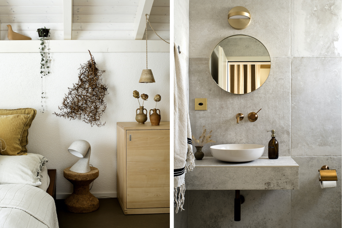 For all the intentionality of her design, Richards muses that the choices one makes sometimes spring from something deeper than the immediate aims of a project. “I think that in Switzerland, as in the rest of the world, there are a lot of style trends circulating at the same time, with varied color palettes. I have interior designer friends in Switzerland who have a very different universe from mine, very colorful and punchy. My rather neutral, natural palette, with a few colorful touches, such as terra-cotta or lemon yellow, and natural materials – wood, ceramics, cotton and linen – are in line with my personality and philosophy of life. I’m sensitive to the themes of ecology, nature, animals and plants, and this probably has a major influence on my aesthetic and ethical choices.”