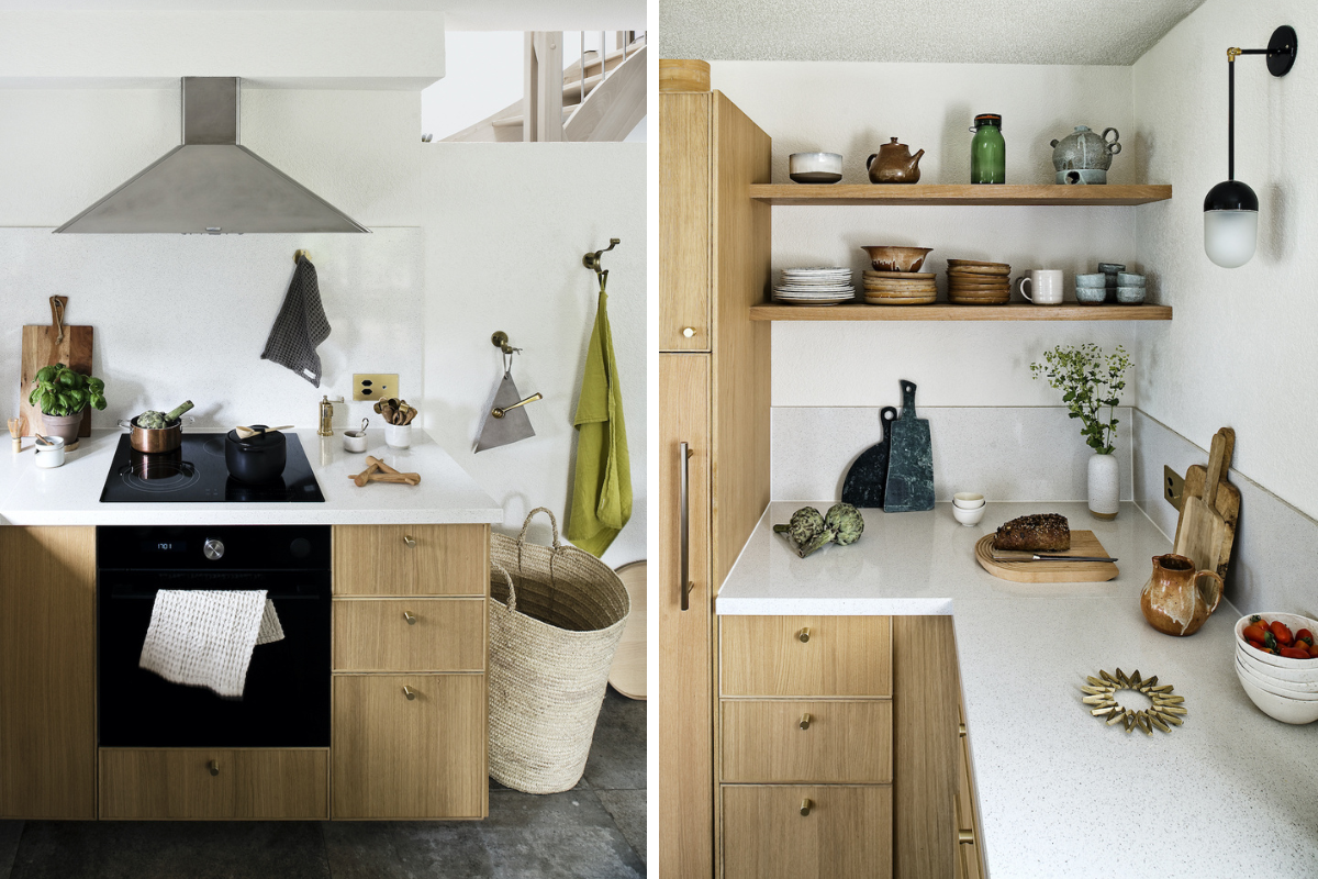 Although the house now presents a simple, direct and unassuming aspect, it took quite an intervention to achieve this effect. The kitchen and bathroom were utterly reworked, and the staircase, which opened directly onto the kitchen, was refreshed and closed off a bit with a partition wall to create a better flow and visual definition.