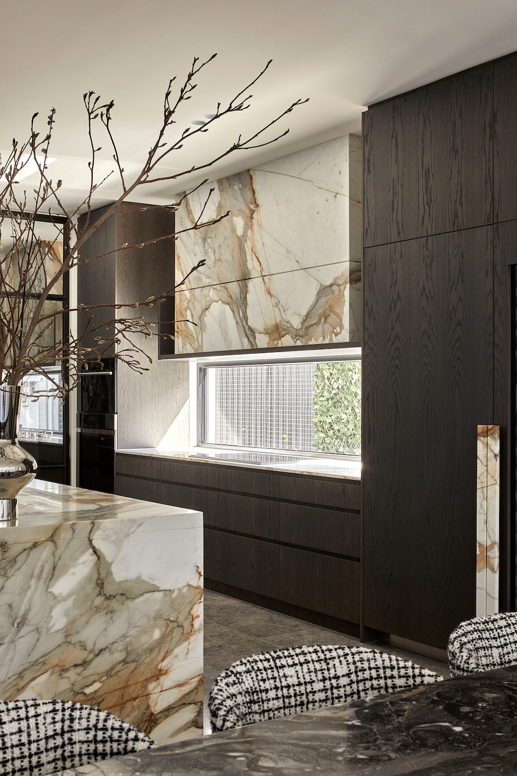 Set in one of Melbourne’s leafier suburbs, Kernan Residence spatially draws inspiration from the exterior sculptural form, achieving a sophisticated sense of calm through refined detailing and a rich material palette.