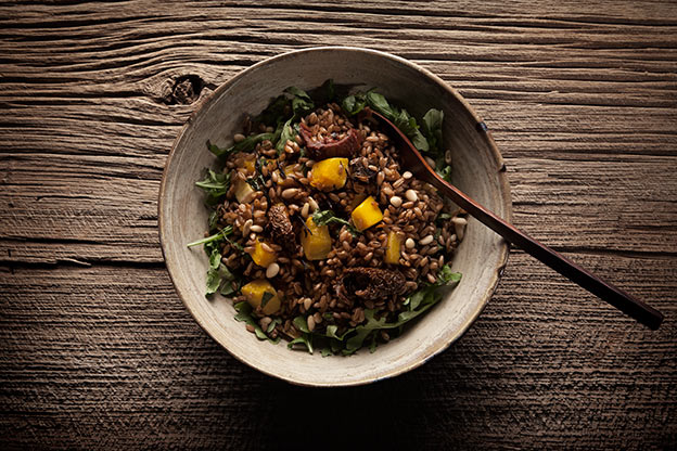Today, one of my favorite ways to use rye is to make cooked grain dishes. Grains are great for salad-type meals with the roots of winter or the greens of spring (or both, as seen in the recipe here), making them easy and fast as well as nutritious and sustainable meals.