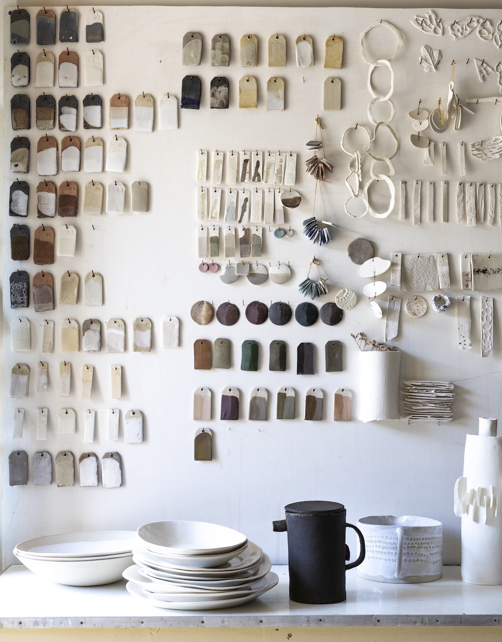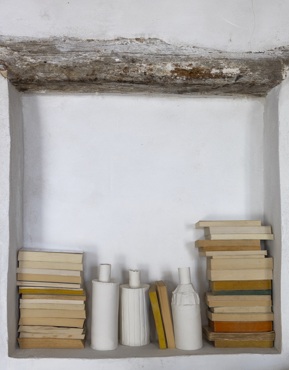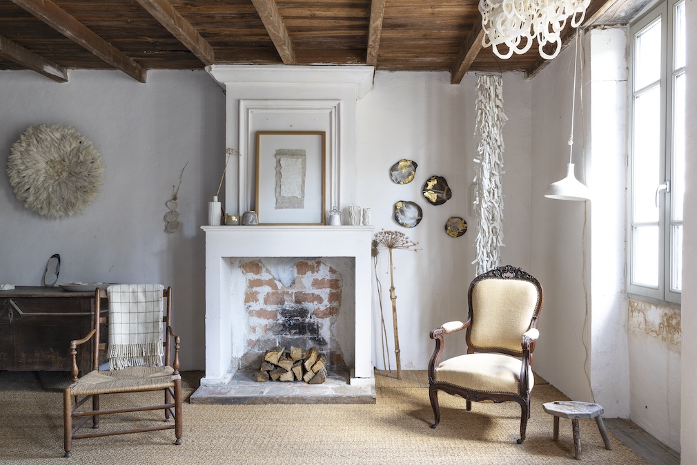 Whether working on a wheel, building from slabs or shaping from coils, creating forms from clay is an earthy business. And the home ceramicist Justine Hay de Slade and her husband, Jean, have fashioned from a cluster of time-worn structures in France’s Haute Saintonge region seems a perfect reflection of the labor-inflected life they lead. (As Plutarch said, “No man ever wetted clay and then left it, as if there would be bricks by chance and Fortune.”) While neither is from this area – Justine was raised in the Dordogne, and Jean hails from Brittany – they fell in love with Haute Saintonge on their first visit 15 years ago. The property they now call home is situated on the edge of a small village with the open countryside right outside their garden gate. Once owned by a farming family, it comprises several buildings built in the 19th century (with bits dating to the 16th century), all in sad shape when the couple came upon them. Occupied but badly neglected – lacking the standard conveniences – the place required a major commitment to make it truly habitable. “Just cleaning out the buildings was a gigantic task. You had to be very organized and physically fit,” describes Justine, whose company is called Epure. “Plus, we had our business to run and a one-year-old baby to care for.”
